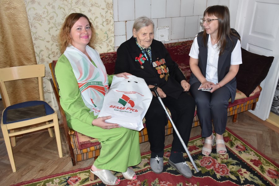 З самымі цёплымі, шчырымі словамі віншаванняў напярэдадні Дня Незалежнасці Рэспублікі Беларусь завіталі да ветэрана Вялікай Айчыннай вайны Сафіі Стасевіч, тылавіка Ганны Собаль і былога вязня Паліны Шаўцовай начальнік упраўлення па працы, занятасці і сацыяльнай абароне насельніцтва Бярэзінскага райвыканкама Вераніка Джігера, старшыня раённай агранізацыі “Чырвоны Крыж” Ірына Дубовік і намеснік дырэктара Бярэзінскага тэрытарыяльнага цэнтра абслугоўвання насельніцтва, прадстаўнік раённай арганізацыі “Белая Русь” Алеся Ермакова.