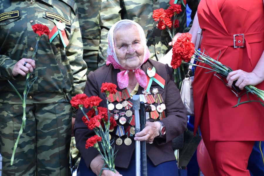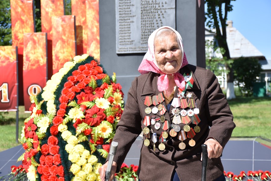 Самае пачэснае месца на мітынгу займала ветэран Вялікай Айчыннай вайны Сафія Пятроўна Стасевіч. У святочным адзенні, з медалямі на грудзях. Бярэзінцы пазіралі на яе з удзячнасцю. А дзеткі адразу ж падышлі з кветкамі…