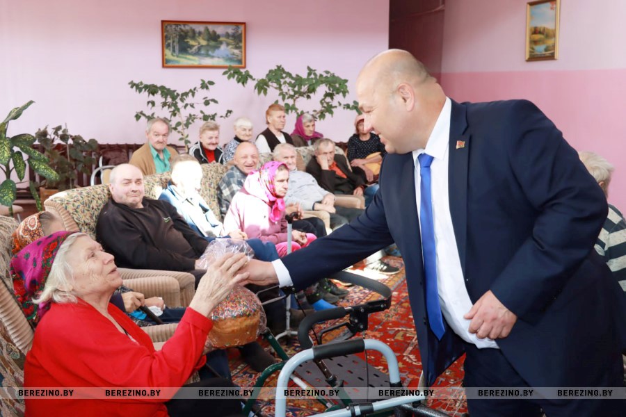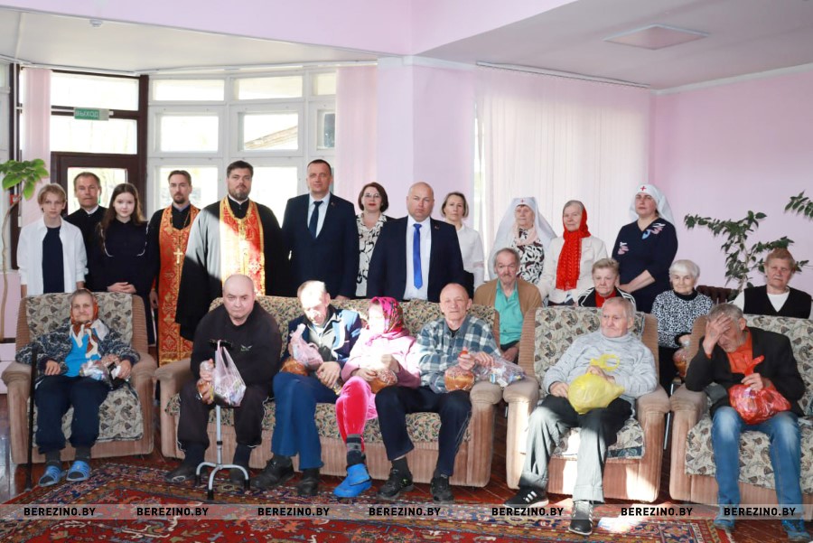 Сегодня глава района Андрей Соколовский, председатель районного Совета депутатов Владимир Трухан, заместитель председателя райисполкома Ольга Колячко, Благочинный Березинского округа протоиерей Илья Гончарук посетили отделение круглосуточного пребывания граждан пожилого возраста и инвалидов в д.Дулебы. Поздравили с великим праздником Пасхи вручили подарки.