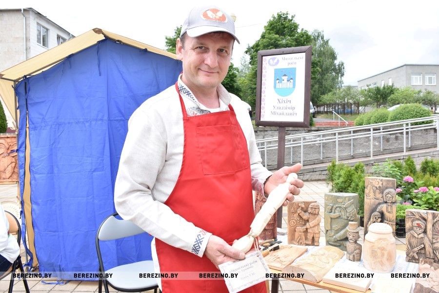 - Папулярнасць драўлянай лыжкі сёння павялічваецца з кожным годам, калі глядзець на колькасць майстроў на нашым сённяшнім свяце. У нас і дзеткі працуюць, і дарослых шмат працуе. Асабіста сам я зрабіў шмат лыжак рознага гатунку, і вялікія, і малыя. І ў розных конкурсах, фестывалях, кірмашах удзельнічаў. Запомнілася мабыць першая, якая не атрымлівалася. Крамя лыжак вырабляем вінажніцы, шпакоўні і шмат усяго рознага. І вучні радуюць, асабіста ў мяне іх пяць. І мерапрыемства сёння выдатнае!