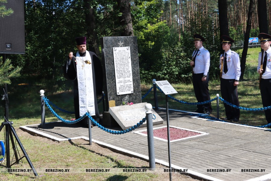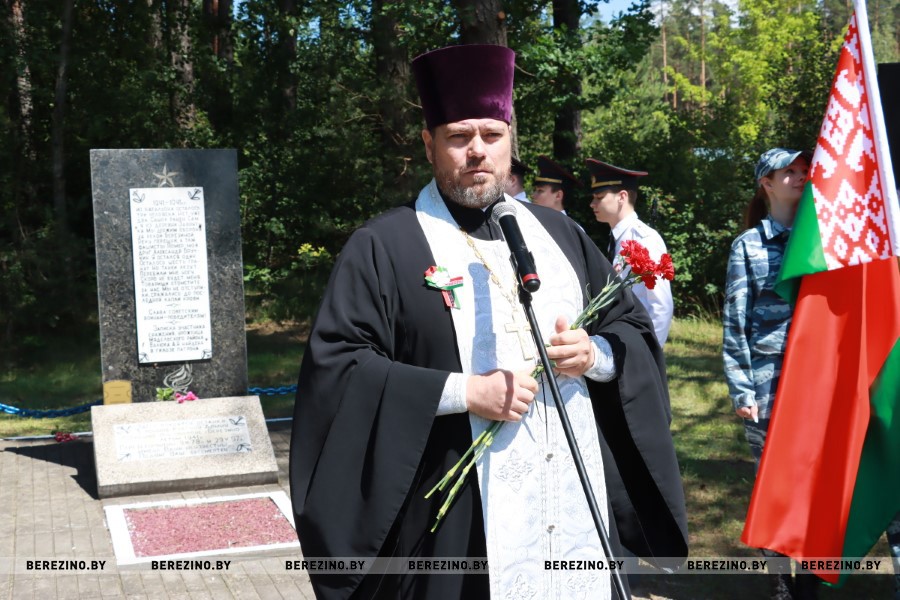 Благочинный Березинского церковного округа протоиерей Илья Гончарук в своём выступлении призвал сотворить молитву в упокоение душ павших в боях за Родину и отслужил молебен у памятника.