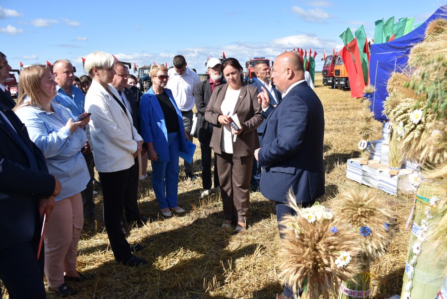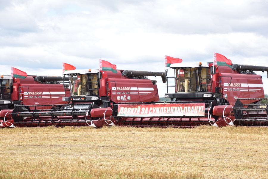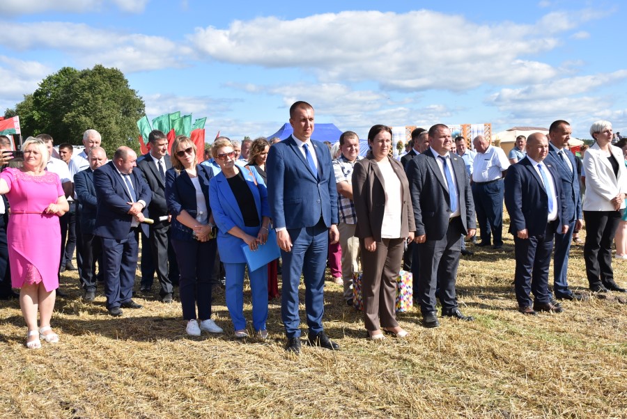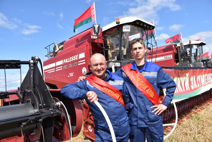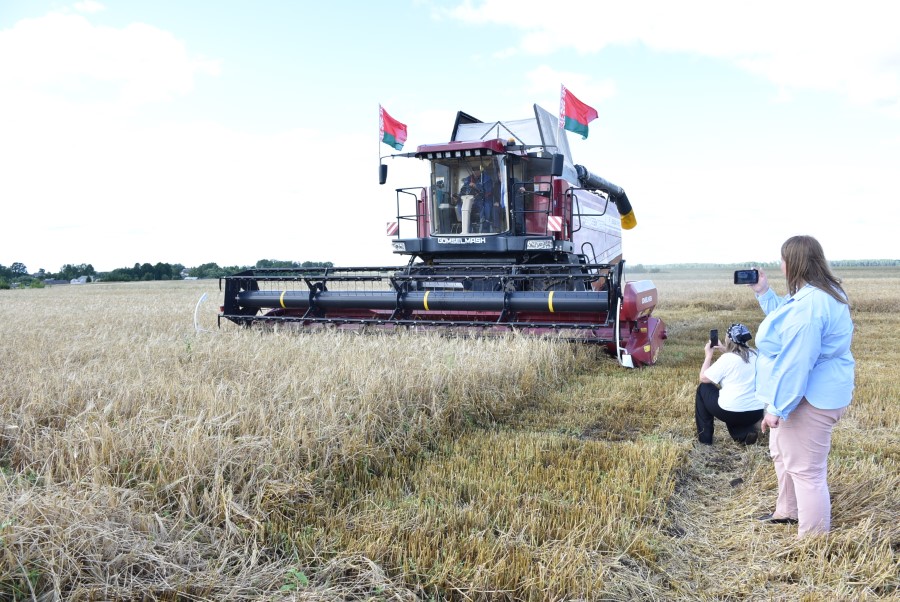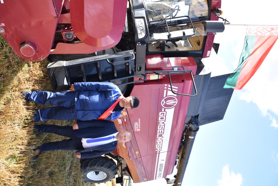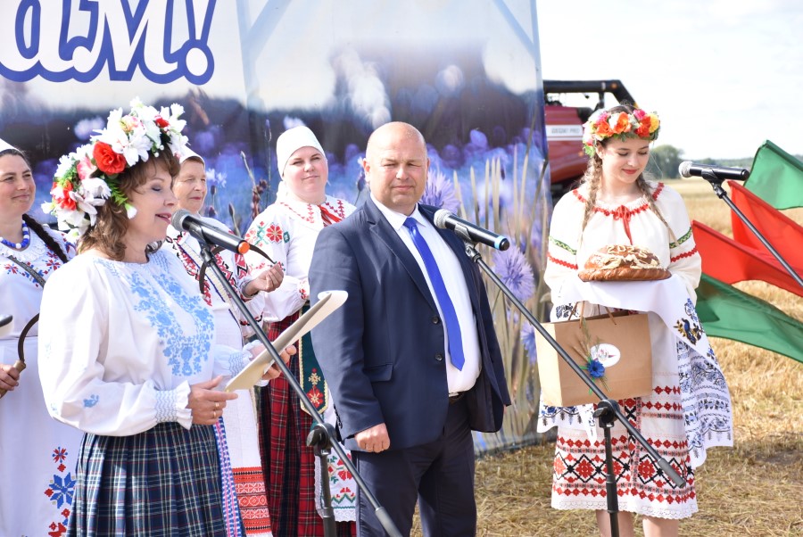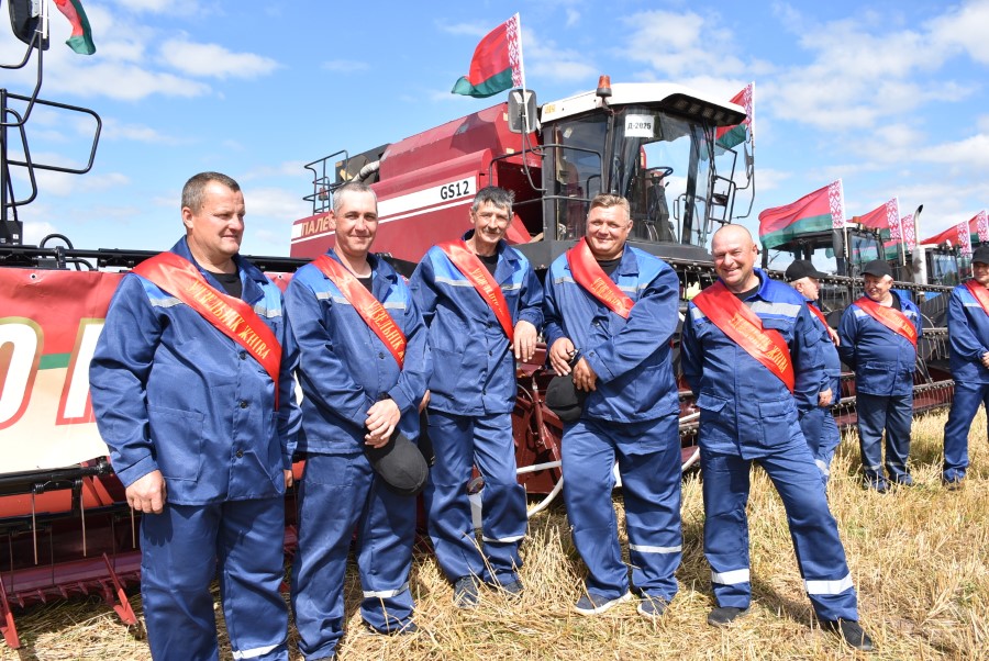 Но хватит уже ядреной ржи стоять в поле. Пора начать убирать созревшие хлеба, дать официальный старт жатве, а первому комбайну намолотить первые центнеры свежего зерна. Почетная миссия первыми выйти в поле предоставляется председателю райисполкома Андрею Соколовскому и комбайнеру ОАО «Погостский» Александр Ермолович. И вот комбайн плавно отправляется в путь. Пусть сегодня он лишь условный, недолгий. Но завтра, да и в последующие дни жатвы, именно они, могучие комбайны и управляющие ими комбайнеры, станут главными действующими лицами, главными тружениками и добытчиками хлеба, нашей надеждой на зажиточную жизнь. В добрый путь, хлеборобы! Спасибо вам за ваш труд. И пусть будет он благославенным, приносящим вам радость и трудовые победы!
