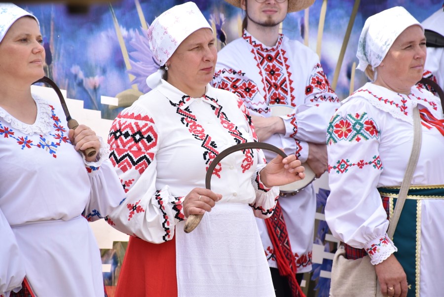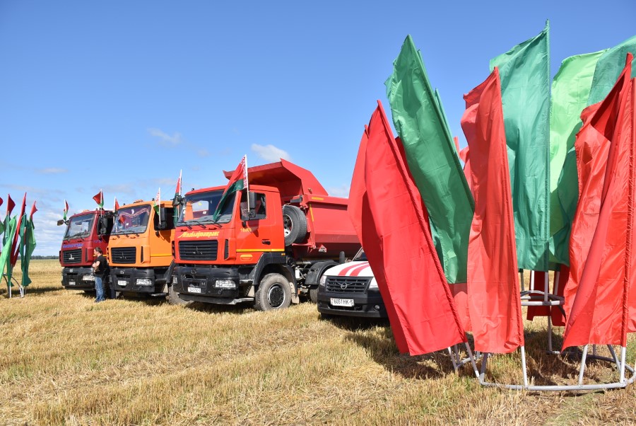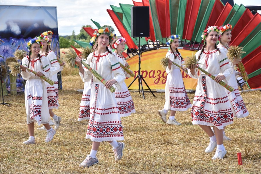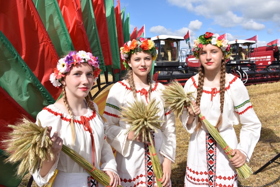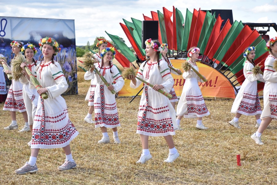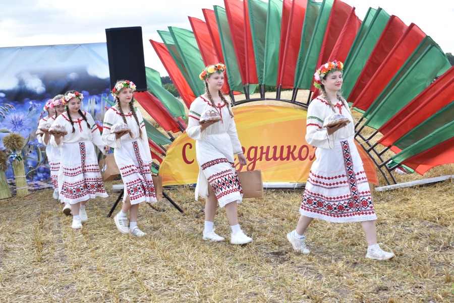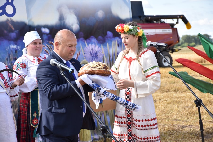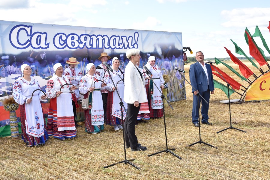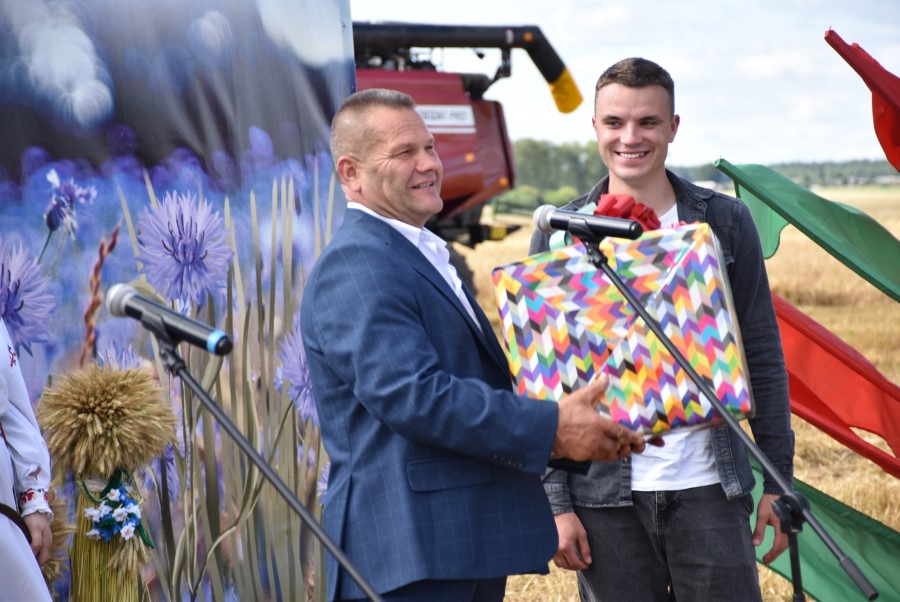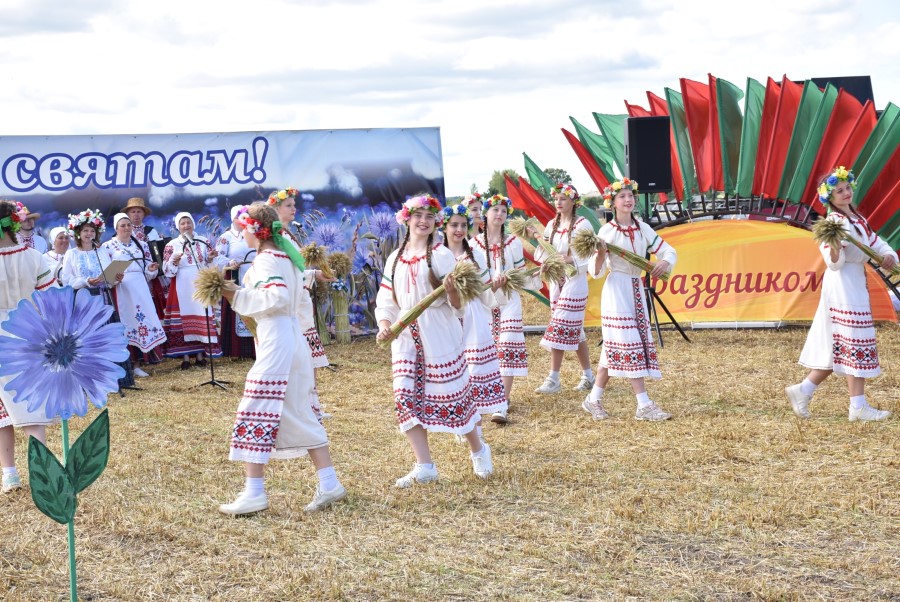 И вот наступает пора жницам по-старинке, серпами, с песнями начинать зажинать уже выспевшее зерно, чтобы затем сделать из него первый зажиночный сноп «на сто коп, на тысячу мерак. Вышэй снапок ад гары и яснейшы ад зары». Вот он – весомый, колосистый, золотой – взлетает в руках Андрея Соколовского высоко в небо. И пока Андрей Валентинович подбрасывает его, все загадывают, чтоб прошла жатва без потерь, чтобы техника не ломалась и чтобы Бог дал здоровья всем участникам жатвы.