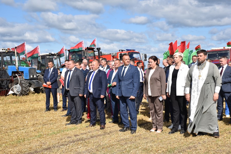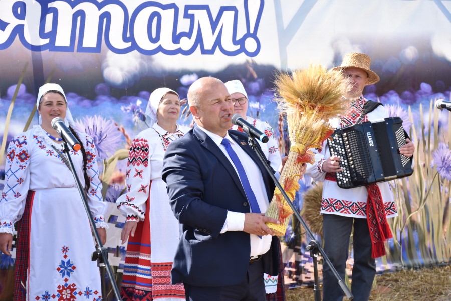 Со словами приветствия и с правом открыть жатву-2025 года к присутствующим обратился председатель районного исполнительного комитета Андрей Соколовский.