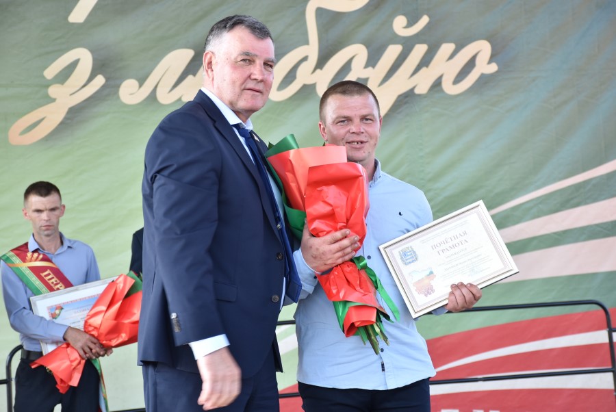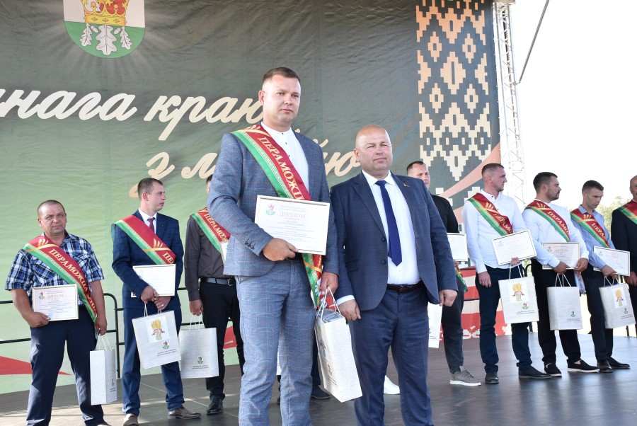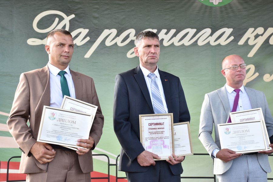 А вот наступает не менее волнующий и торжественный момент: начинается награждение победителей районного соревнования жатвы-2025. Кто же вошел в число самых-самых-самых? Награды вручает председатель районного исполнительного комитета Андрей Соколовский. Итак, дипломы победителей ежегодного районного соревнования на уборке урожая зерновых и зернобобовых культур среди сельскохозяйственных организаций получают: за первое место – филиал «Сельскохозяйственное производство «Орешковичи» ОАО «Минский завод колесных тягачей» (руководитель Сергей Счасный); за второе место – сельскохозяйственное унитарное предприятие «Здравушка-агро» (руководитель Александр Асмоловский); третье место – филиал ООО «Ома» (руководитель Дмитрий Колоцей).
