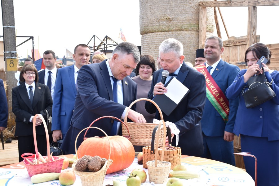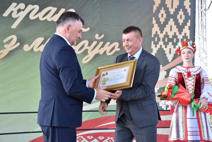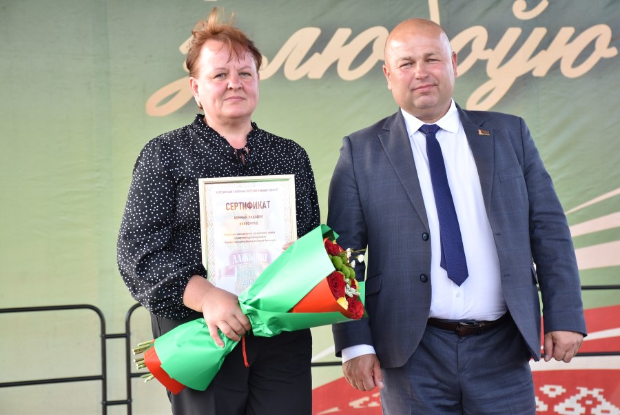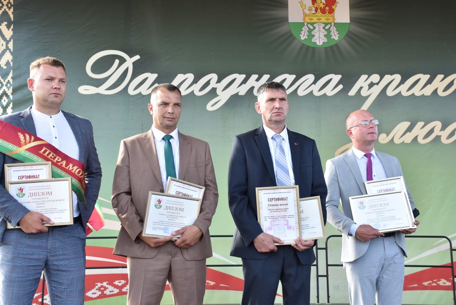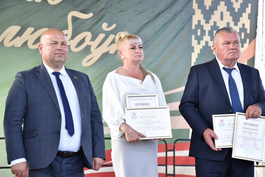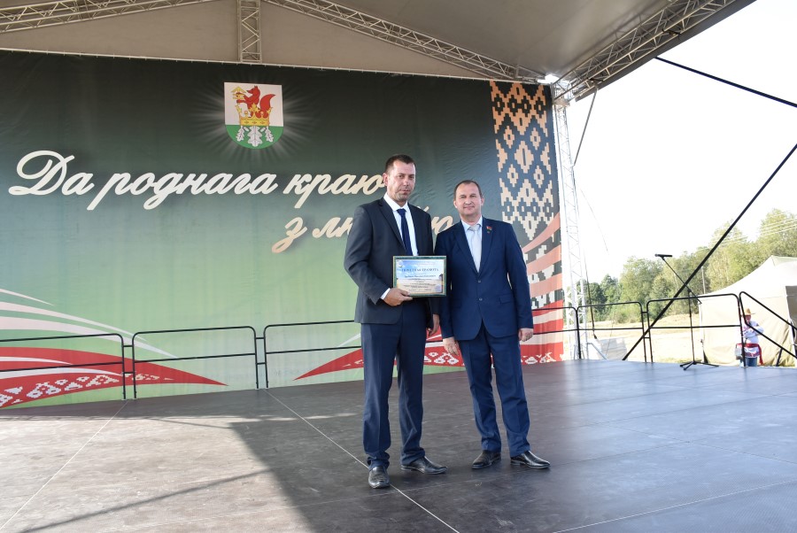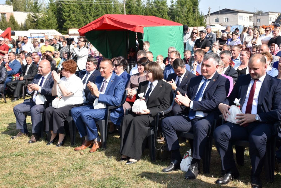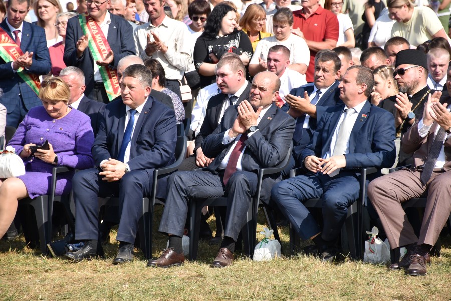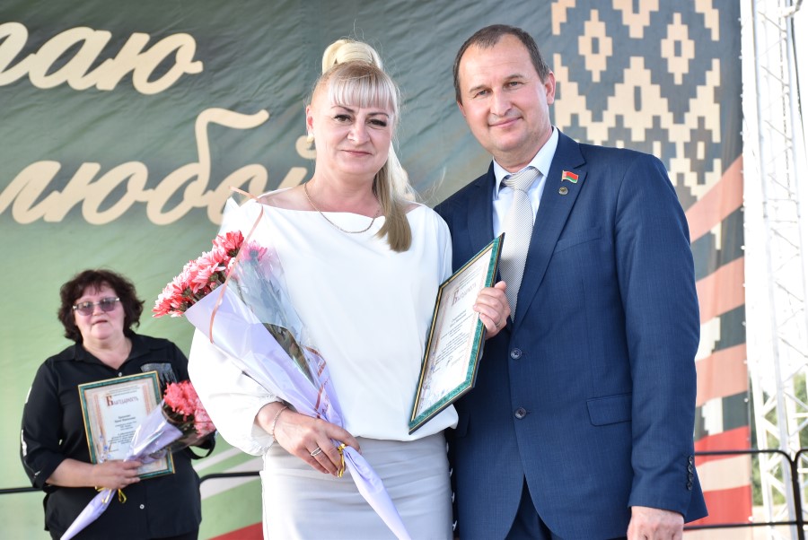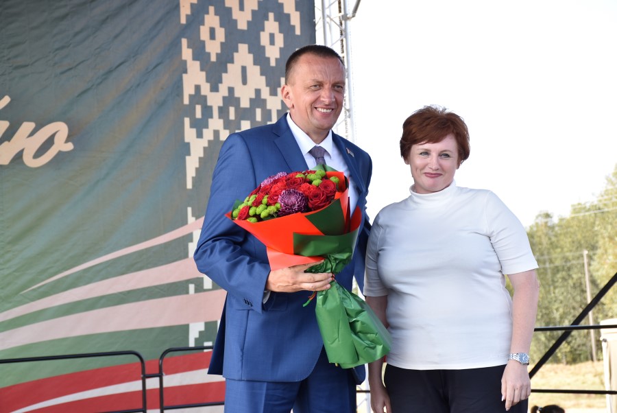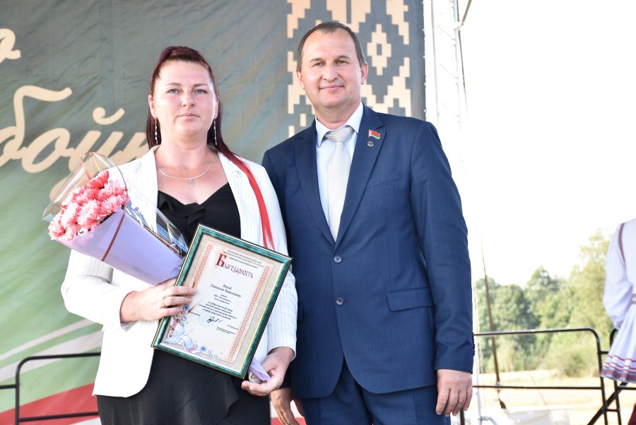 Уважаемые аграрии, коллективы и руководители организаций, все, кто внес свой вклад в нашу хлебную победу. Спасибо вам за ваш труд, который является основой экономики нашего региона, залогом его развития и процветания. От всей души делаю вам и вашим семьям крепкого здоровья, мира, добра, новых трудовых побед, богатых урожаев и роста благополучия. Слова благодарности и глубокой признательности выражаю всем, кто оказал помощь и содействие в благоустройстве населенного пункта в подготовке к мероприятию. Мы ставили задачу не только организовать яркий праздник для тружеников села, но и благоустроить место его проведения. Заасфальтированы и отремонтированы улицы и дороги, проведена замена и установка заборов, восстановлено уличное освещение сделано и многое другое. На результат работали организации дорожной сферы, жилищно-коммунальной, лесной, мелиорации, энергетики, сельские Советы и население. Вот так, сплотившись, все вместе, в Год благоустройства, мы улучшаем качество жизни наших жителей. Огромное спасибо предприятиям, оказавшим содействие в чествовании наших хлеборобов. Это Минский мотовелозавод, Минский автомобильный завод, общества с ограниченной ответственностью «Электросила» и «Магия стройки». Особые слова благодарности за многолетнее плодотворное сотрудничество ООО «Ома» и лично генеральному директору Игорю Евгеньевичу Адаменко. Мы высоко ценим не только финансовый вклад в организацию проведения праздника, неоднократную спонсорскую поддержку на развитие района, но и конструктивное партнерство по многим направлениям. Рассчитываем на дальнейшее крепкое сотрудничество и совместные достижения.