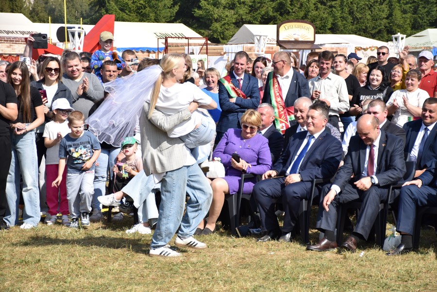 - Уважаемые труженики агропромышленного комплекса Березинщины, жители и гости нашего района, - отметил он. – Примите искренние поздравления с успешным завершением уборочной страды и районным праздником «Дожинки-2025». Это праздник, аромат которого пропитывает все вокруг, который приковывает внимание всех и демонстрирует масштабную мобилизацию и сплоченность белорусов. Мы не сетовали на погодные условия, а сплотились и достигли хлебной высоты. Издавна наша земля славится талантливыми, трудолюбивыми людьми и крепкими традициями. Одна из них – чествование земледельцев, которые любят свой край и заботятся о его благополучии. Сегодня, проезжая по Беларуси, никого не оставляют равнодушными бескрайние хлебные поля, которые завораживают своим величием. Но это не только про красоту, а про ежедневный и кропотливый труд, про технологическую и исполнительскую дисциплину, твердость духа и преданность делу. Это про хлеб – символ, который объединяет всех нас, про благополучие и развитие. А еще – про мир.