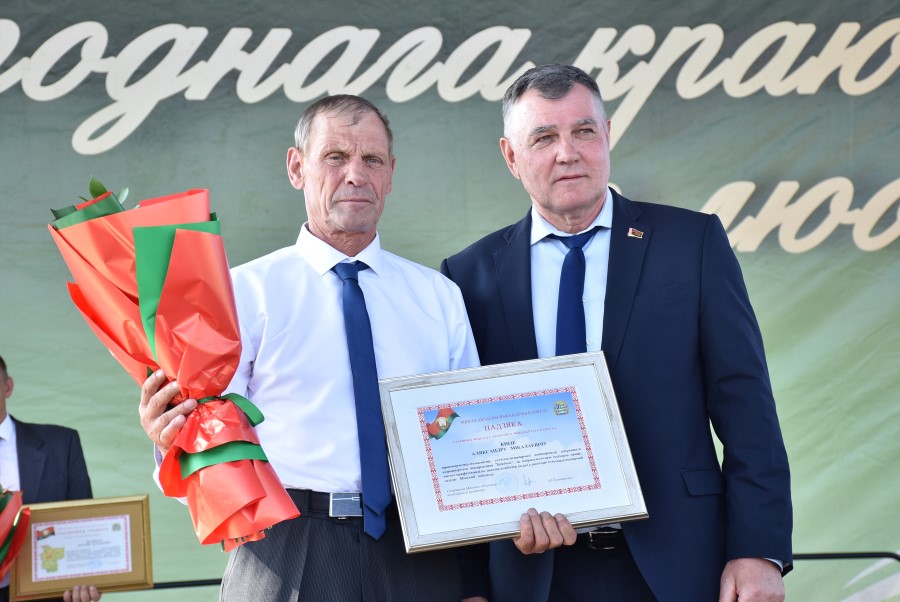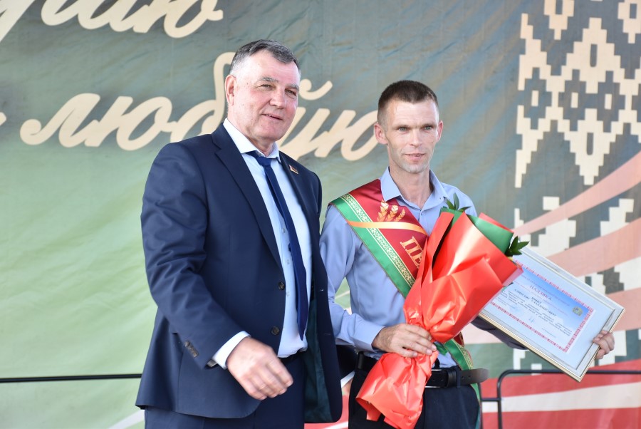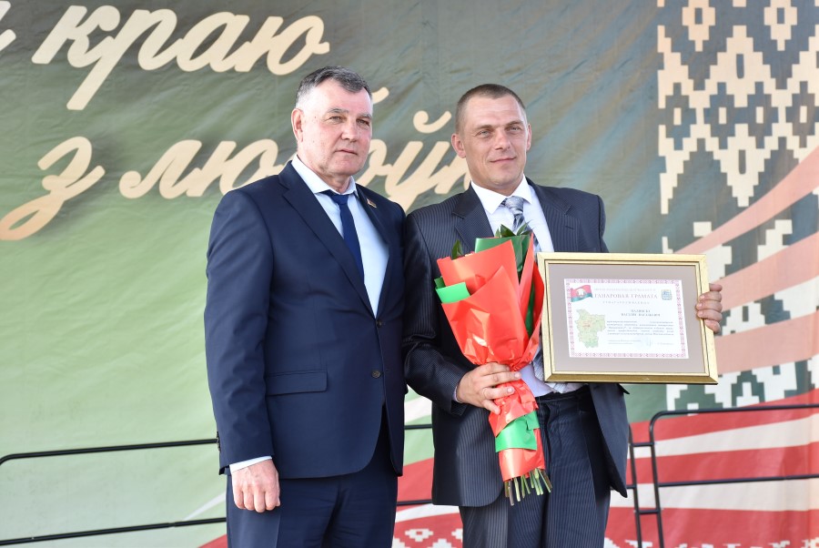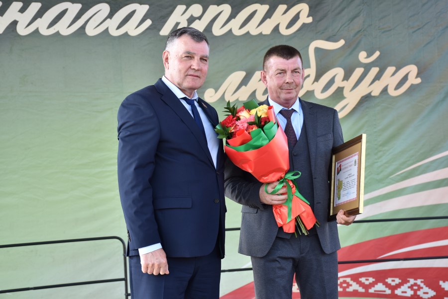 Не остался в долгу перед березинскими тружениками полей и депутат Палаты представителей Национального собрания Республики Беларусь Юрий Корсик. Он вручил благодарности депутата Палаты представителей Национального собрания трактористу-машинисту ОАО «Бродец» Илье Корику и главному инженеру ОАО «Погостский» Кириллу Мотузу.