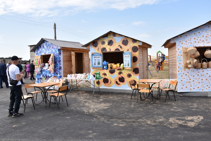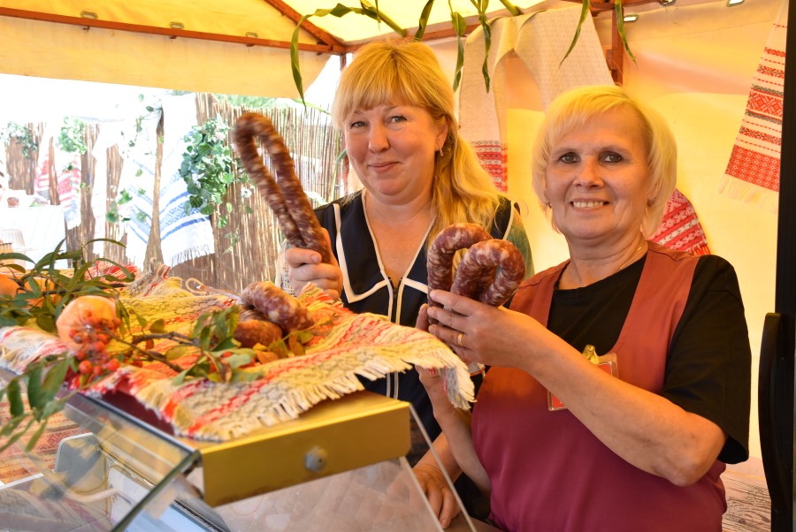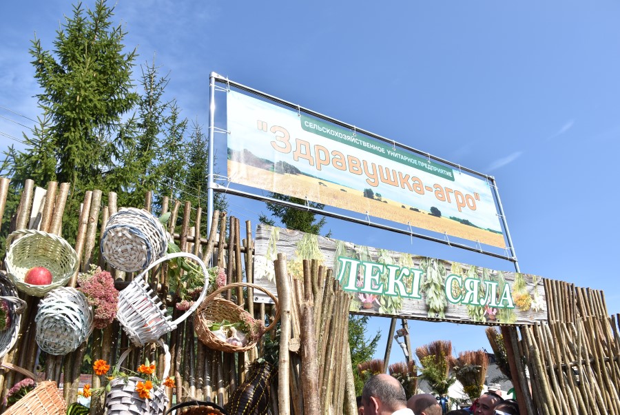 На ней, пройдя через распахнутую установленную дверь, гостям было представлено 11 импровизированных подворий. Их хозяевами были сельхозпредприятия региона. Чего тут только не было, какие тематические названия они не носили: «Хата бацькоў», «Хлеб мира и единства», «Кафе тысячников»…