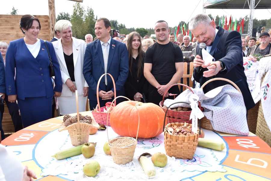 Дорогие земляки, сегодня только от нас с вами зависит наше будущее и развитие района. Будем лучше работать – будем лучше жить. Уборочная кампания была непростой. Но это был лучший пример нашей мобилизации, сплоченности, мудрости и достижения высокого результата. Впервые в регионе собран такой рекордный урожай. Вот так, работая в одной связке, в одной команде, которая у нас сегодня есть, мы решим любые задачи, достигнем высоких результатов и показателей во имя доброй славы и процветания родного Березинского края и любимой Беларуси. С праздником! Берегите себя для семьи и для страны! С новым урожаем! С новым хлебом!
