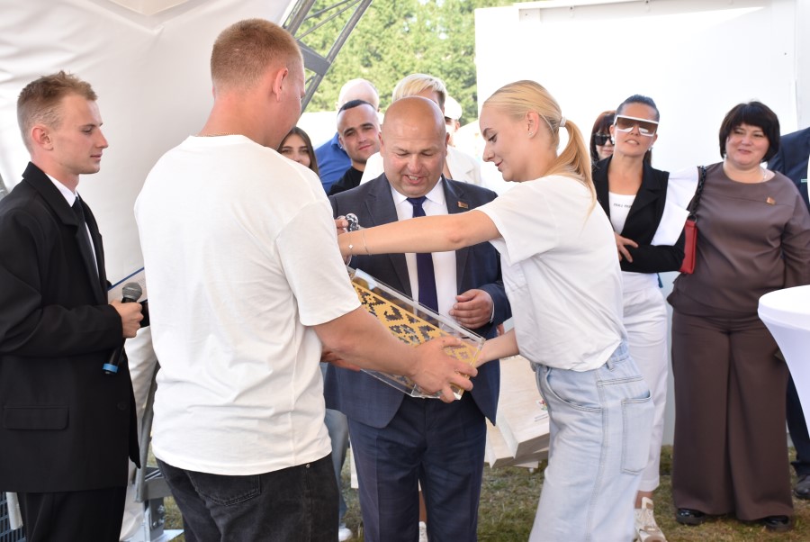 На подобных мероприятиях не только высказываются слова благодарности принимающей стороне, но традиционно всегда называют и адрес следующих «дожинок». Провести их в 2026 году выпадает честь открытому акционерному обществу «Березинский райагросервис». Его директору Александру Автухову вручается соответствующее удостоверение, а также весомый дожиночный сноп. Что ж, будем с нетерпением ждать нового праздника. Он будет аж через год? А кто сказал, что это очень долго? Стоит лишь провести озимый сев, затем подкрепить его яровым, провести все необходимые мероприятия, сопутствующие росту семян, и вот снова она – жатва, ее герои и собранный урожай. Пусть и в следующем году он будет столь же весомым и богатым!