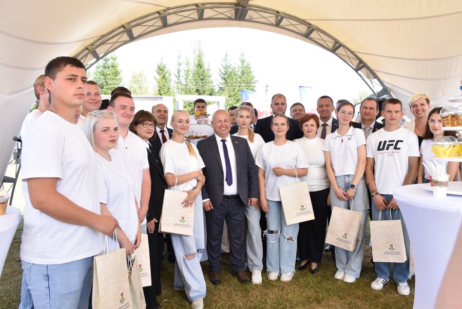 От нее дорога на праздник вела через символический мостик, где руководителей района, области и гостей праздника приветствовали молодые специалисты Березинщины.