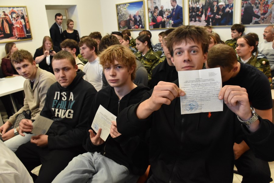 Далее в торжественной атмосфере Максим Анатольевич вручил призывникам повестки.