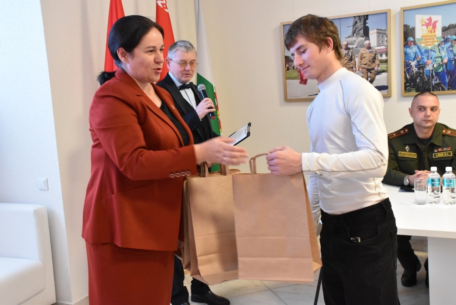 Обратилась к призывникам заместитель начальника Березинского райисполкома Алеся Титова. Алеся Алексеевна пожелала каждому призывнику достойной службы. И вручила подарки.