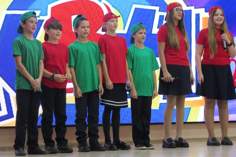 После того, как капитаны провели жеребьевку, игра началась. Визитная карточка и приветствие называлось «Пусть горит зеленый свет на твоей дороге». Нужно было ярко представить свою команду, школу, и, конечно же, знание дорожных правил.