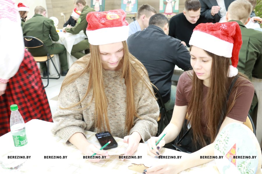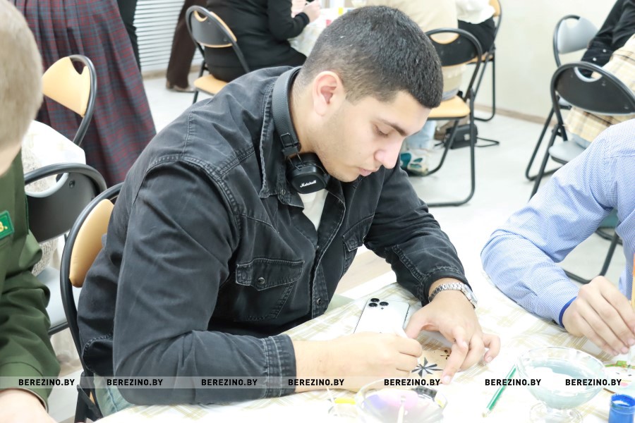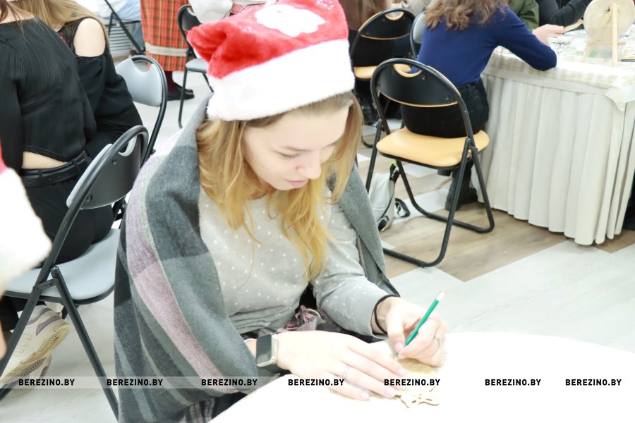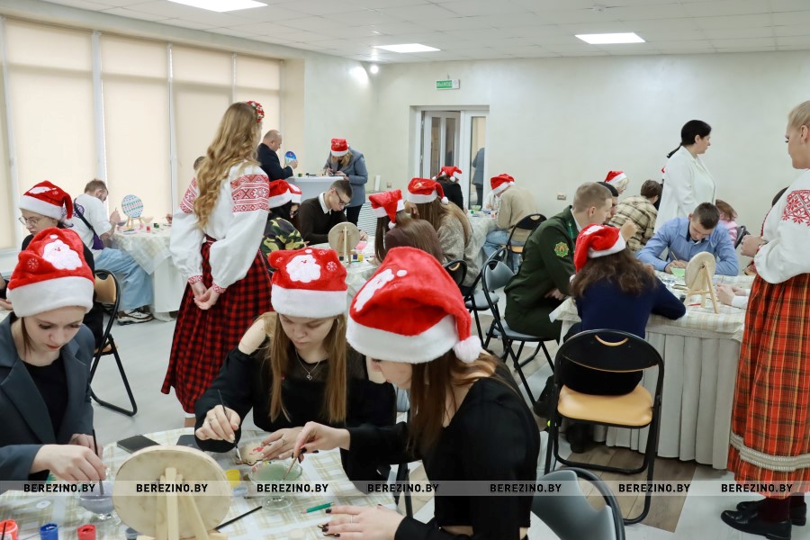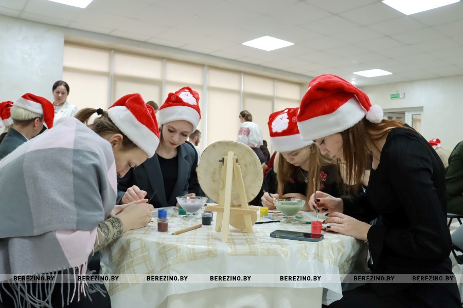 Молодых специалистов приветствуют в районном центре ремесел. Здесь они разрисовывают новогодние елочные игрушки.