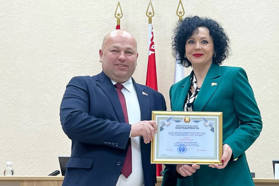 Благодарность Министерства юстиции Республики Беларусь вручена начальнику отдела ЗАГС Наталье Белоус.