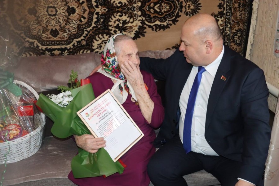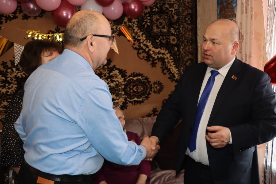 Для того, чтобы поздравить столетнего юбиляра, высказать ей слова своего восхищения ее жизнью, пожелать дальнейшего активного долголетия и крепкого здоровья, к Анастасии Ивановне на праздник заглянули председатель Березинского районного исполнительного комитета Андрей Соколовский, его заместитель Алеся Титова, председатель районного совета ветеранов Анатолий Зябко, сотрудники территориального центра социального обслуживания населения. Прибыли, как водится, не с пустыми руками: Благодарность, цветы, продуктовый набор и микроволновая печь! И, конечно же, в этот день звучали песни от нашего знаменитого музыканта Михаила Попруги.