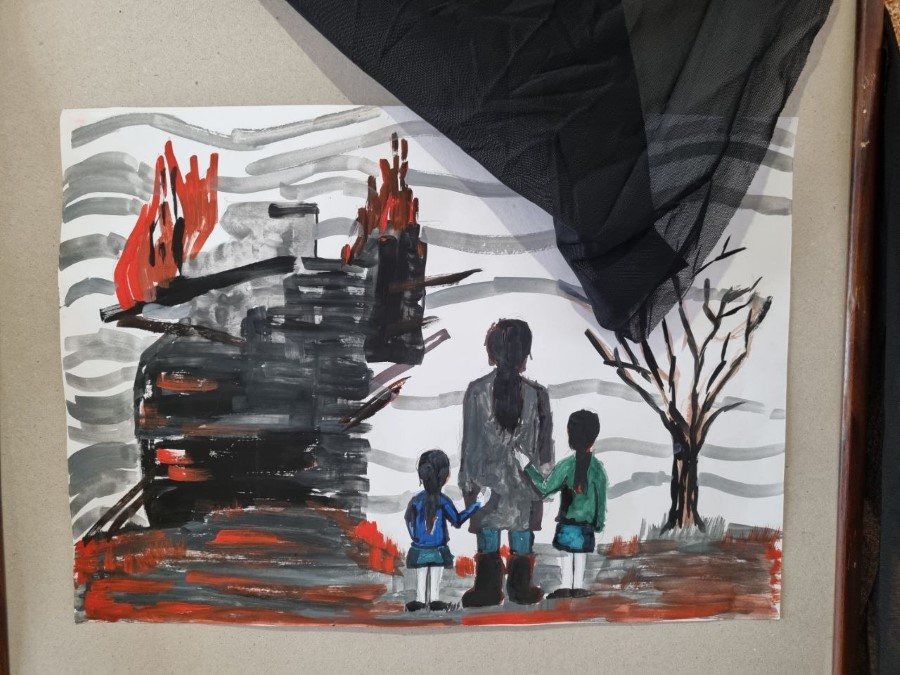 На рисунках детей - боль и память, надежда и уверенность в том, что пока мы помним о невинных людях, погибших в том огне, такое НИКОГДА не повторится.