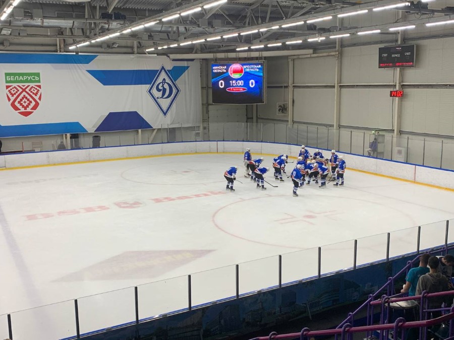 В эти минуты команда Минской области оспаривает путевку в финал Республиканских соревнований любителей хоккея с шайбой на призы Президентского спортклуба с командой Брестской области.