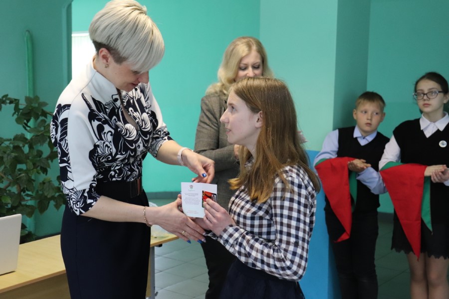 18 учеников Поплавской школы сегодня пополнили ряды БРСМ. В торжественной обстановке школьной линейки после государственного гимна Республики Беларусь вручила членские билеты первый секретарь райкома БРСМ Екатерина Аврамчик.