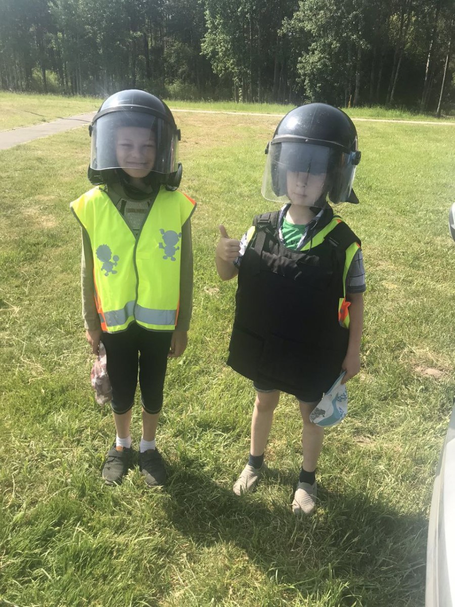 Ребятам наглядно были продемонстрированы средства индивидуальной защиты, а также технические средства организации дорожного движения и патрульный автомобиль.