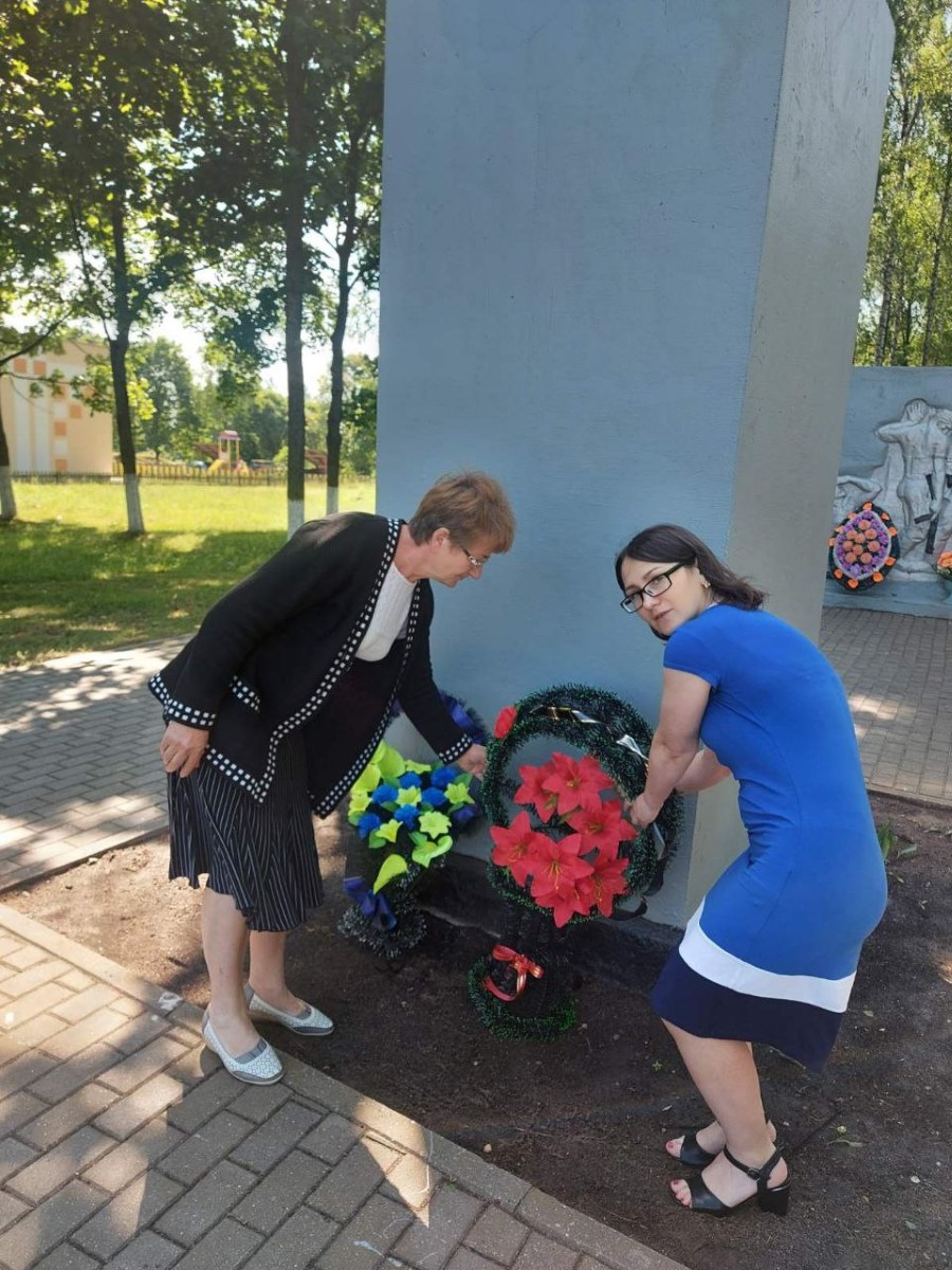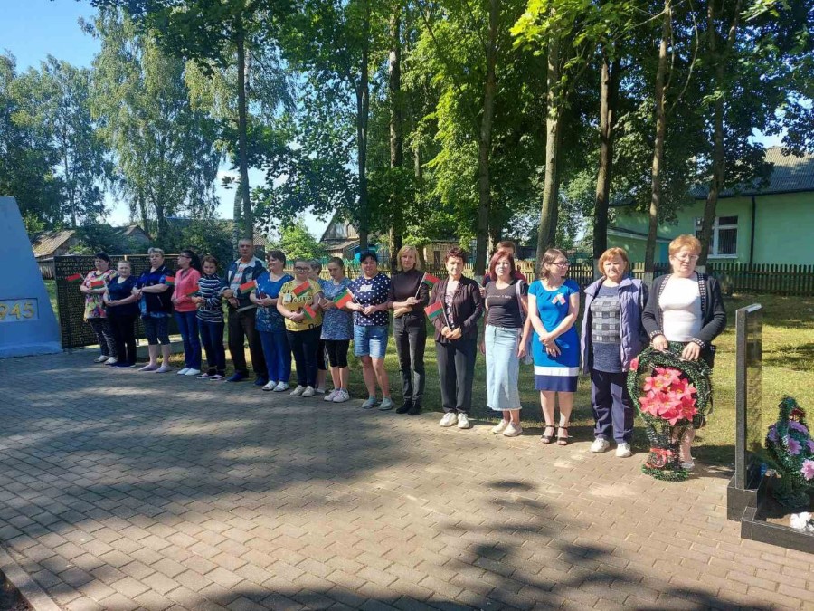Работники учреждений образования, сельского хозяйства, лесничества, жители и гости приходят возложить цветы и отдать дань памяти людям которые завоевали и сохранили мир на нашей земле.