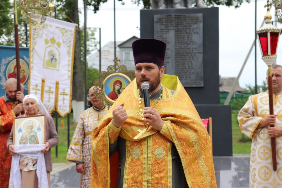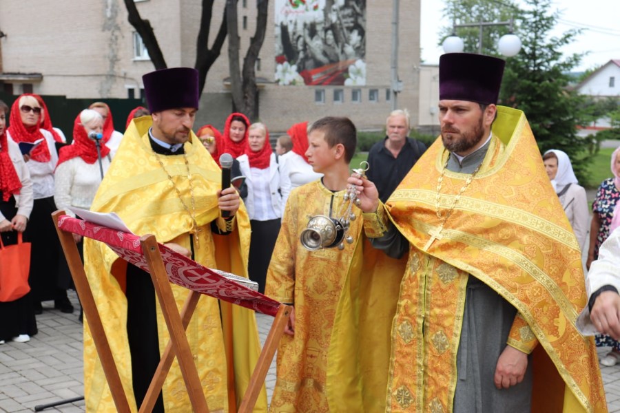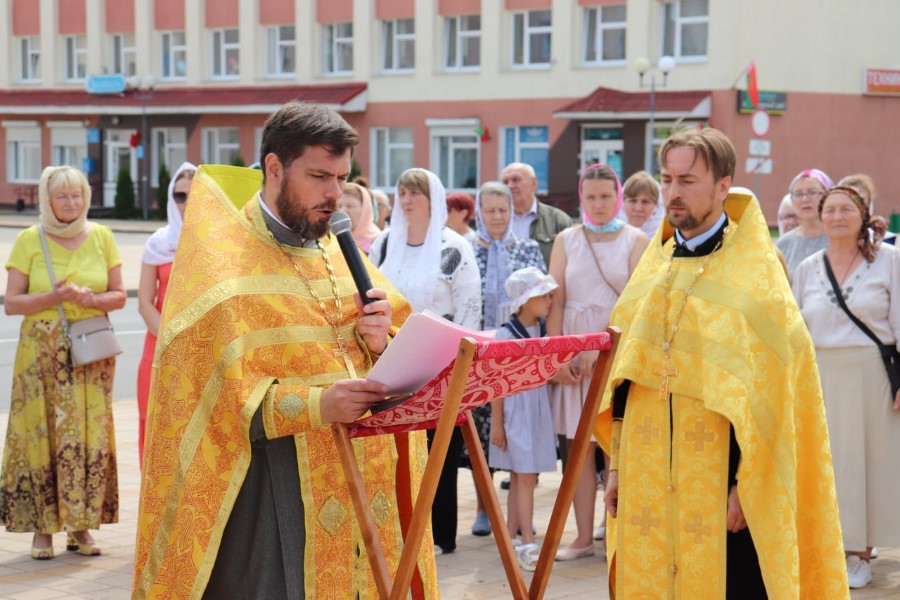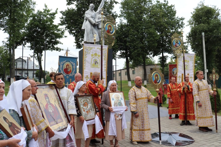 Участники Крестного хода провели молебны на городской площади и в городском сквере возле памятника воинам и партизанам, павшим в годы Великой Отечественной войны.