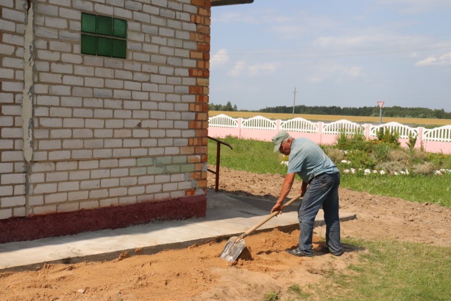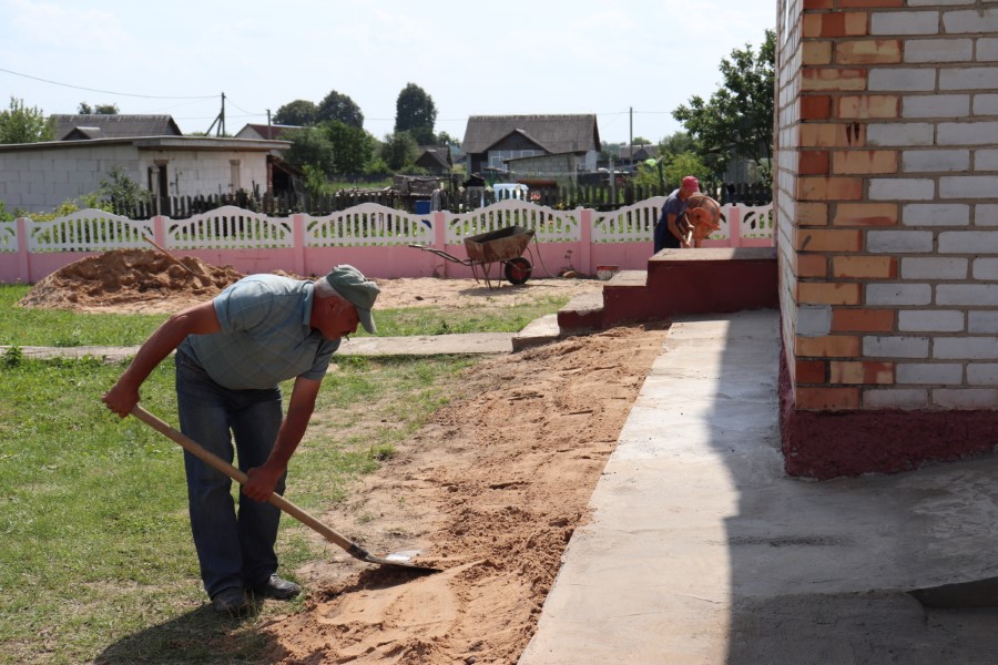 Заливали бетоном новый пандус работники строительной бригады ОАО «Погостский» бригадир Геннадий Уснич и рабочие Леонид Полнер, Василий Костель, Павел Букатый. В данный момент они заняты созданием отмостки вокруг здания. После останется лишь поменять двери.