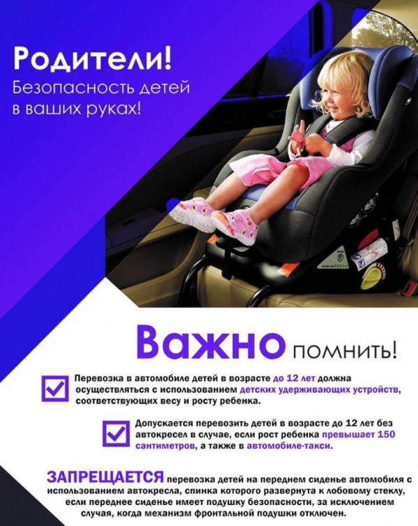 Запрещается перевозка детей на переднем сиденье легкового автомобиля с использованием детских удерживающих устройств, соответствующих весу и росту ребенка, спинка которых развернута к лобовому стеклу транспортного средства, если переднее сиденье имеет подушку безопасности, за исключением случая, когда механизм фронтальной подушки безопасности отключен.