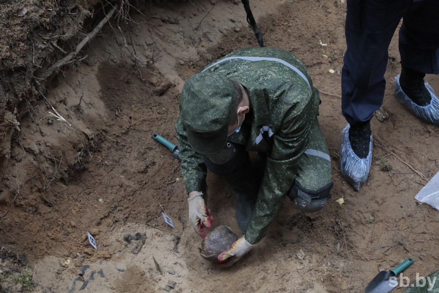 Эксперты обнаружили многочисленные скелеты и черепа мирных жителей. О характере захоронения свидетельствуют найденные на месте преступления вещи: монеты, футляр для очков, пуговицы, остатки обуви, фрагменты пуль, гильз и гребешков для волос, части столовых приборов и перочинных ножей.