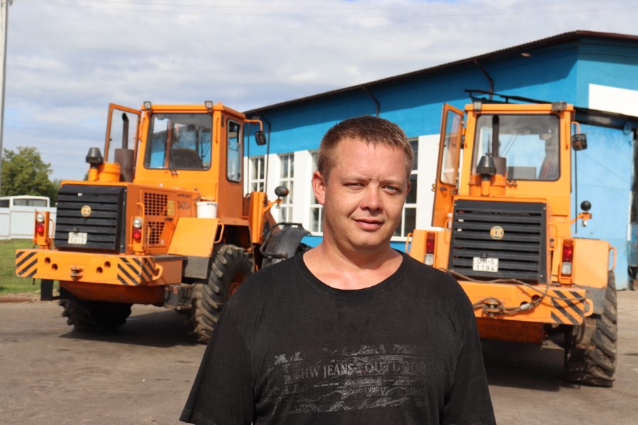 Сярод тых, хто заняты на зернетаку, і кіроўца пагрузчыка Аляксей Цэдрык. Толькі сёлета прыйшоў ён у “АграМАЗ” з мясцовага лясніцтва і адразу атрымаў новенькі “Амкадор”. Як прызнаецца мужчына, у гаспадарцы працаваў і раней, але толькі сезонна, у прыватнасці, прымаў удзел у жніве. Вось і вырашыў стаць пастаянным членам гэтага зладжанага калектыву.