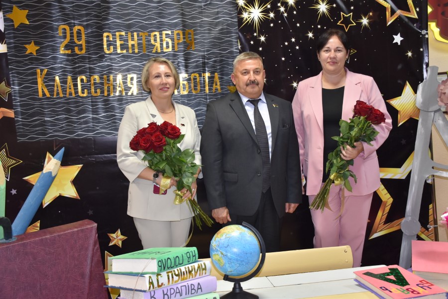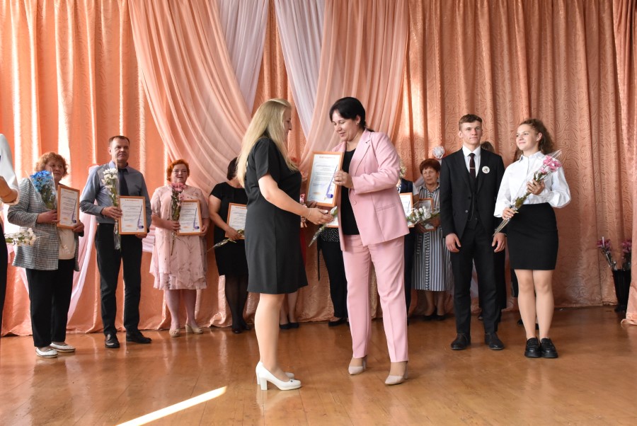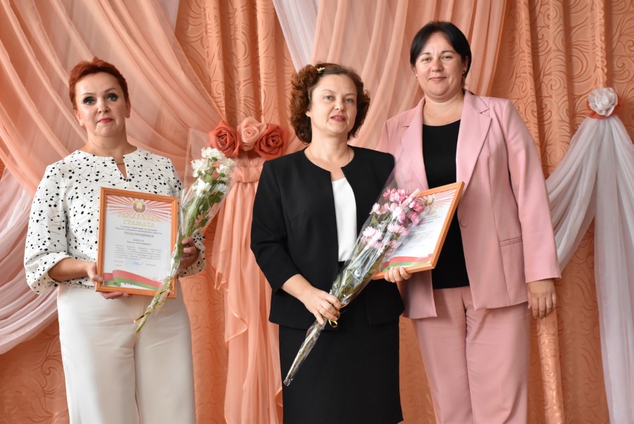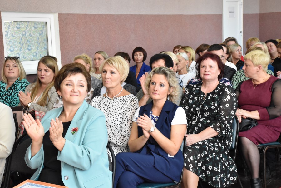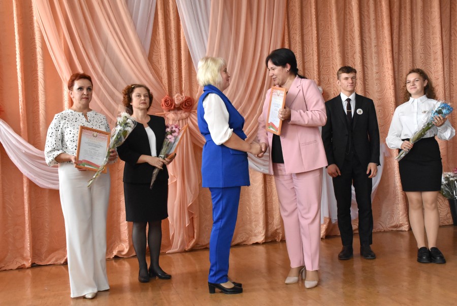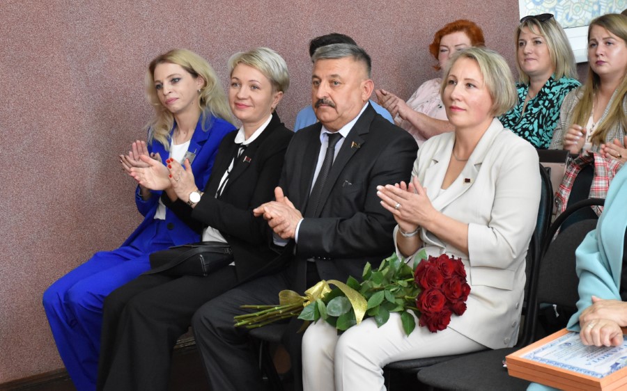 В зале собрались виновники торжества и почетные гости председатель районного Совета депутатов Виктор Лашковский, заместитель председателя райисполкома Ольга Колячко, начальник управления по образованию спорту и туризму Алеся Титова, председатель райкома профсоюза работников образования и науки Людмила Толкач, главный специалист райсовета Татьяна Милько, первый заместитель начальника Березинского РОЧС Дмитрий Анципов и первый секретарь РК БРСМ Екатерина Аврамчик.