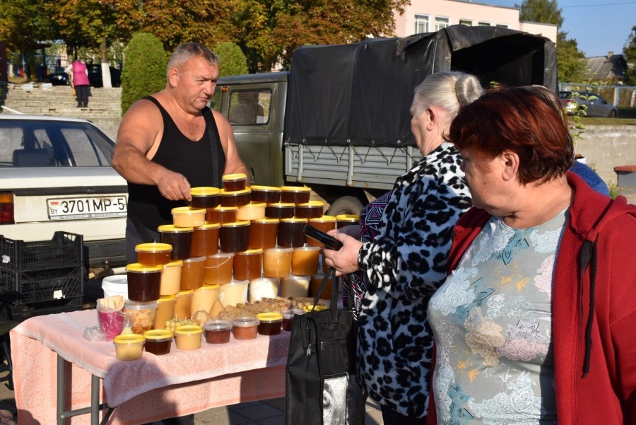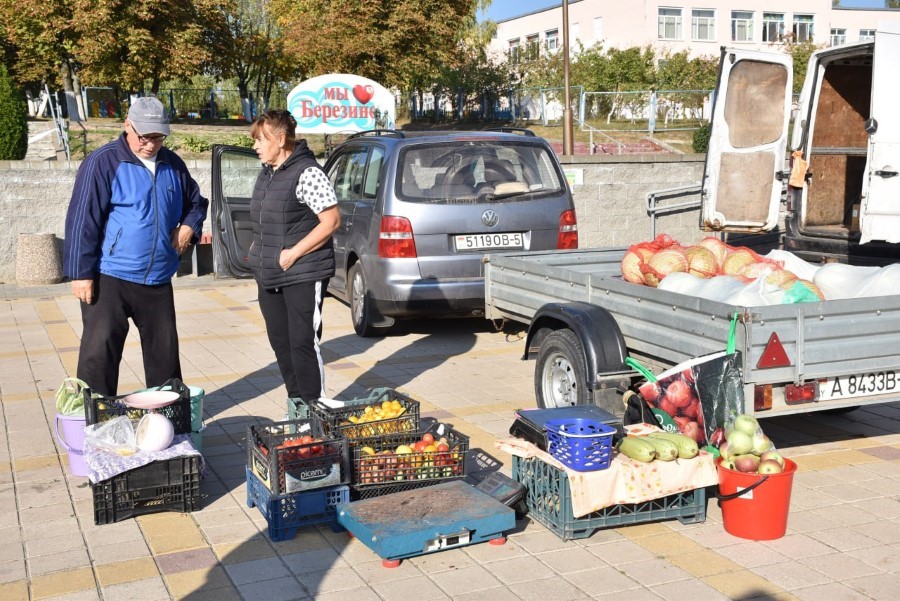 Сегодня с девяти часов утра на городской площади и шла активная торговля. Наиболее востребованными оказались зерно (пшеница) от ОАО «Богушевичи» и рыба, которой торговали представители рыбхоза «Свислочь». Именно возле этих машин было больше всего покупателей, которые выстраивались в очереди. Большим спросом у березинцев пользовались также картошка, капуста, лук, морковь и другие овощи. Посетителям ярмарки предлагались также и декоративные растения и цветы для украшения подворий. Торговля была организована более чем в десяти точках и товар каждой из них был востребован, вызывал живой интерес покупателей. Поэтому никто в этот день не возвращался домой с пустыми руками.