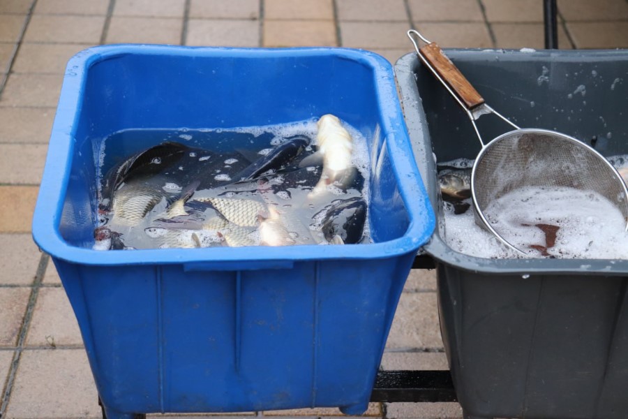 В продаже также были также мёд и пчелиные соты, законсервированное в трёхлитровые банки свиное сало и многое другое. Очередь выстроилась за свежей рыбой.