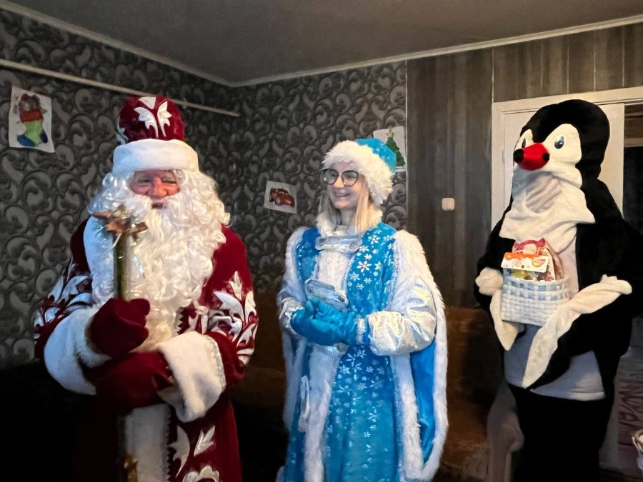 Праздничное настроение дарили семье Дед Мороз, Снегурочка и сказочные герои.
