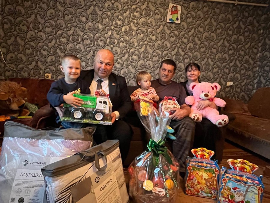 В рамках акции «Наши дети» Андрей Валентинович поздравил семью с праздником, привез много подарков. Глава района пожелал, чтобы Новый год был счастливым, благополучным, мирным, добрым.