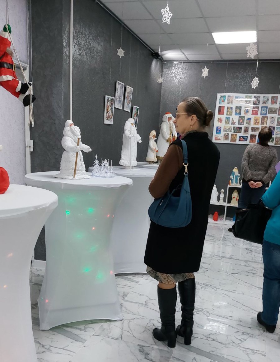 Но Деды Морозы и Снегурочки – далеко не все, что привлекает на выставке. Здесь можно увидеть очень интересные композиции, стенды с советскими новогодними открытками и разнообразные – нежные и пушистые снежинки, изготовленные руками березинских мастериц.