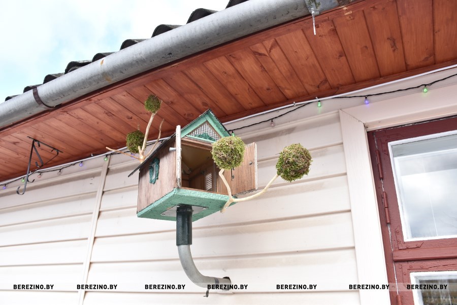 Уютный дом, где комфортно жить, собираться всей семьей за большим столом, встречать внуков. Для комфортной жизни хозяева предусмотрели все удобства – даже есть место для приёма летних ванн! А ещё специальные клумбы с лекарственными растениями, много интересных кормушек для птиц, очень много кустов роз (можно только представить, какое здесь цветочное благоухание весной и летом!).