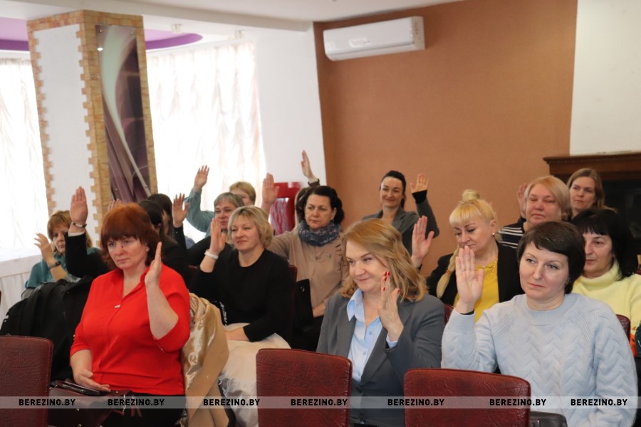 Перед присутствующими выступил председатель Белорусского профессионального союза работников АПК Василий Хватик, который отметил положительную и активную работу Березинской районной профсоюзной организации и ее бывшего председателя Марины Александровны Ковзунович. В связи с переменой ее места работы возник вопрос об избрании на этот пост нового человека. Василий Михайлович на  рассмотрение вынес кандидатуру Екатерины Юрьевны Аврамчик, которая была утверждена исполкомом федерации  профсоюзов.