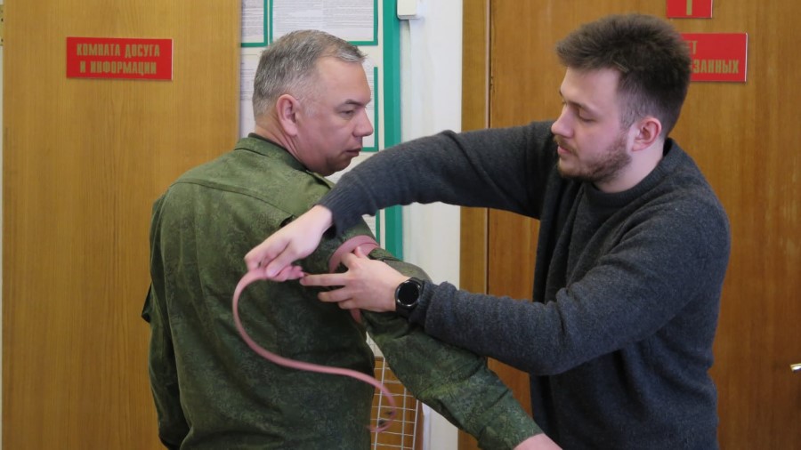 Также в ходе занятия врач-хирург Березинской ЦРБ Константин Запрудский напомнил конкретные рекомендации и алгоритмы действий, в случае получения травм и боевых ран. Внимание заострялось на целесообразности накладывания жгута либо повязки для остановки крови, использования тех или иных препаратов в укладках. В любом случае, при военном положении государство позаботиться, чтобы сформировать опорные пункты для эффективного оказания помощи раненым, в том числе на базе сельских ФАПов. И высокий уровень отечественной медицины, а также достойная подготовка белорусских врачей, сыграет свою роль.