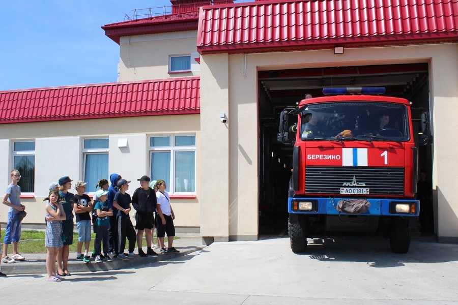 У рамках інфармацыйна-прапагандысцкай кампаніі «Бяспечныя канікулы» інспектар райаддзела па надзвычайных сітуацыях Вольга Ермакова некалькі раз наведала дзяцей з навучальнымі заняткамі, а таксама арганізавала экскурсію ў пажарную часць Беразіно. Адным з найбольш запамінальных стала мерапрыемства «Школа юных ратавальнікаў». Падчас спаборніцтваў каманды дзяцей тушылі ўмоўнае ўзгаранне, выкладвалі з літар адгадкі на нялегкія заданні, бяспечна і хутка «пераходзілі» балота, выбіралі сярод грыбоў ядавітыя і карысныя, арыентаваліся ў парадку паводзінаў на выпадак пажару, расказвалі пра важнасць пажарнага апавяшчальніка. Дапамагала праводзіць спаборніцтвы актывістка раённага аддзялення Беларускай маладзежнай арганізацыі ратавальнікаў-пажарных Валерыя Шмарлоўская. Яна расказала дзецям пра назначэнне і асаблівасці баявога адзення пажарных, правяла конкурс «Ліквідацыя».