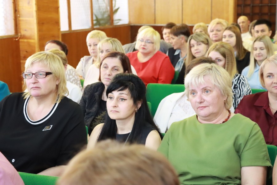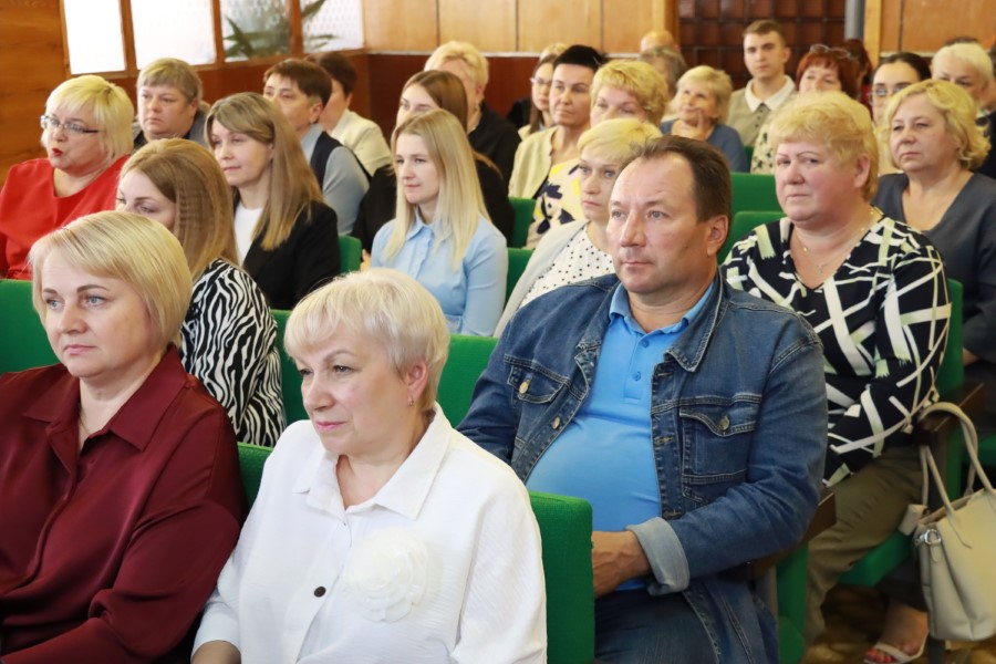 Для вручения благодарностей на сцену актового зала был приглашен глава района.