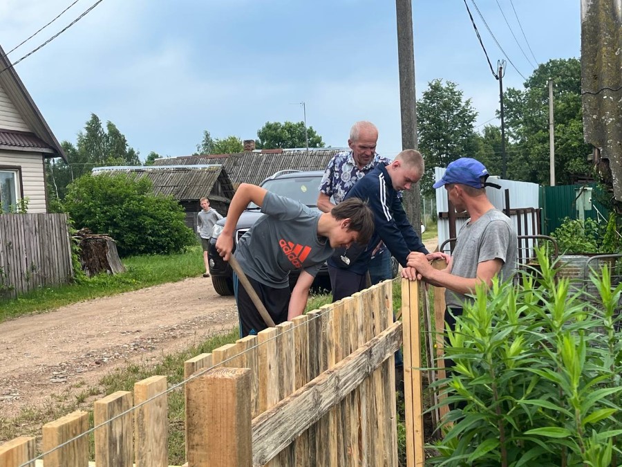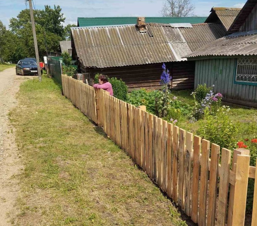Якраз, калі наведваліся да жанчыны, работнікі сельскага Савета і прадстаўнікі БРСМ дапамагалі ей усталяваць агароджу.