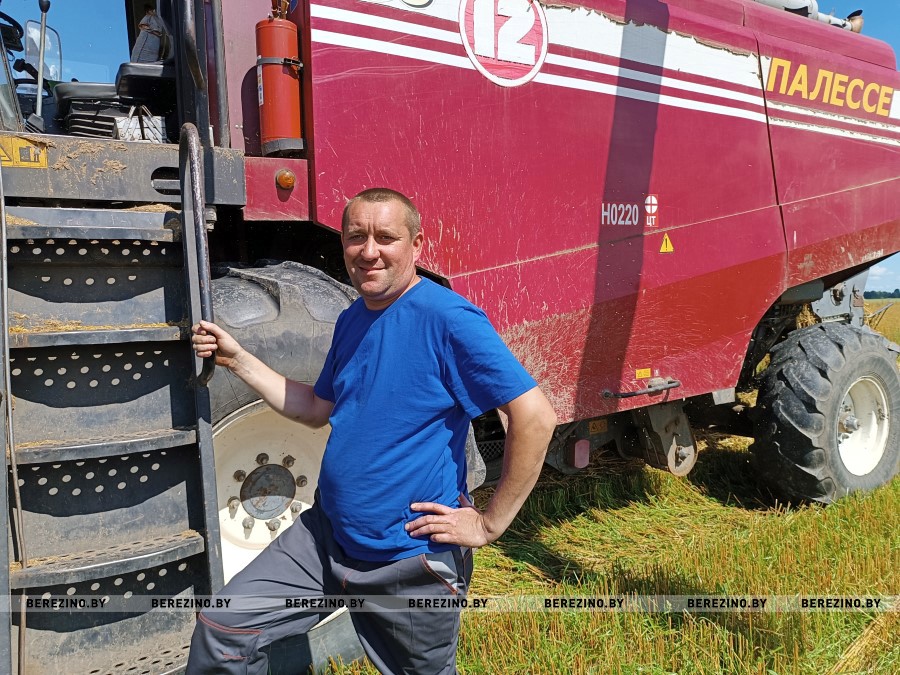 – Сам-то я местный, отсюда и мои корни. Но теперь работаю в Минске на тракторном заводе. В прошлом году на летний период взял отпуск и участвовал в жатве. Так захватило, что и на этот раз решил снова сесть за штурвал комбайна. При такой высокой урожайности можно даже рассчитывать на то, что по итогам жатвы стану тысячником. А это добавит желания и в следующем году приехать сюда.