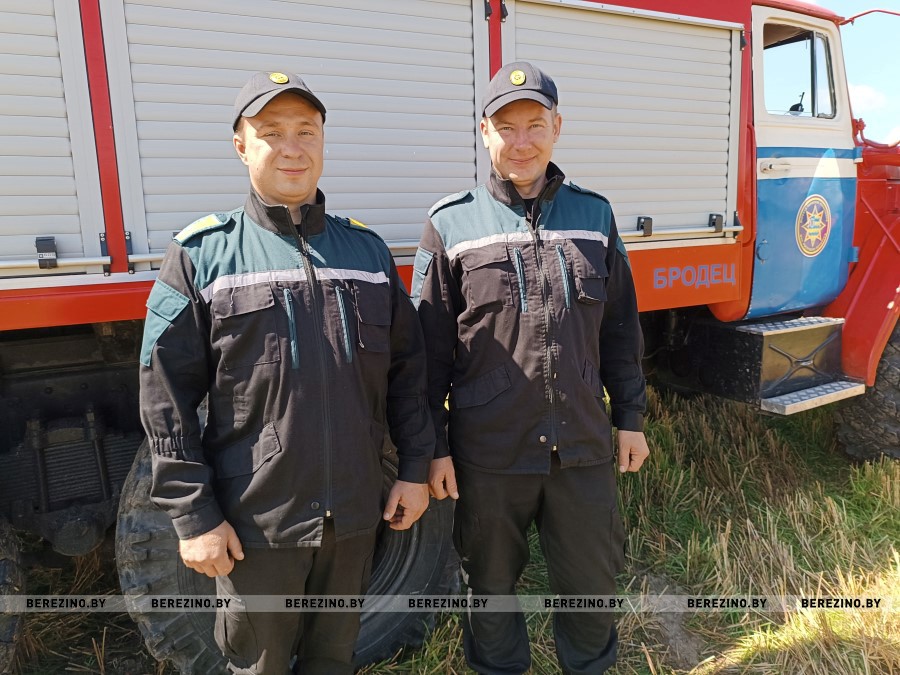 Здесь же, на поле, ведут свое дежурство сотрудники МЧС Максим Соколин и Александр Соболь  из местного пожарно-аварийного спасательного поста. Они – огнеборцы и всегда готовы противостоять возникшей стихии.