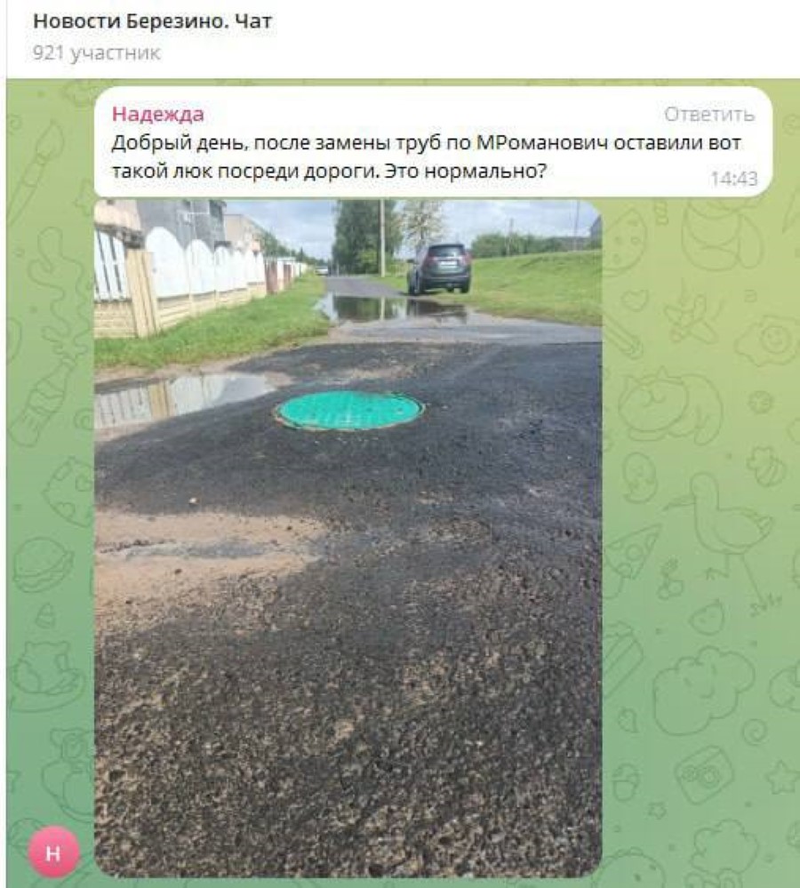 — Сегодня же работы по дополнительному асфальтированию люков были сделаны и по переулку Соколовского города. Их выполнил подрядчик - УП « Минскмелиоводхоз».