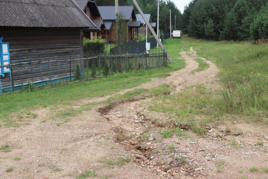 Обилие осадков сказывается и на состоянии дорог, особенное с гравийным покрытием. От потока воды образовываются промоины и ямы. На ликвидацию таких последствий водной стихии нередко приходится выезжать специалистам дорожной службы. Вот и сегодня грейдер ДРСУ-192 был занят на благоустройстве гравийного покрытия автодороги, ведущей с трассы Р-62 к д. Городище. Действительно, на некоторых съездах с нее явно видны следы образовавшихся ручьев, в результате чего дорога становится труднопроходимой для транспорта.