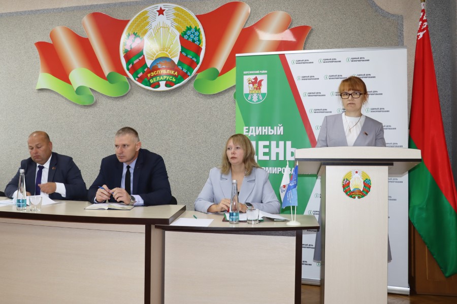 Основная тема Единого дня информирования: "Образование и наука – движущие силы развития общества и государства". По данному вопросу выступила главный специалист управления по образованию, спорту и туризму Татьяна Малашкевич.