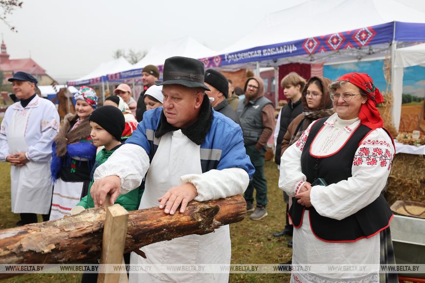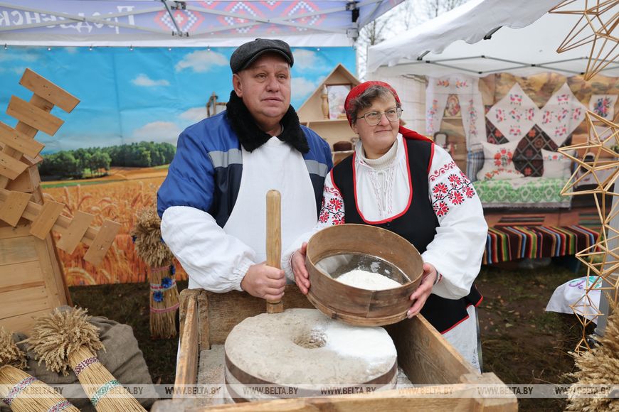 Гродненский район сегодня представляет Иосиф Глебович. "Готовились старательно к празднику. Родители когда-то пользовались таким агрегатом - мельницей ручной, представление небольшое, но имею о процессе", - отметил мужчина.